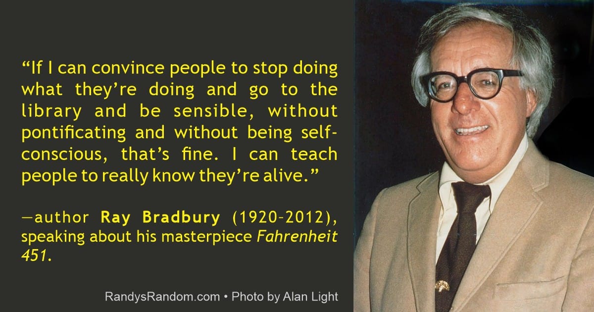 —author Ray Bradbury (1920–2012), speaking about his masterpiece Fahrenheit 451.